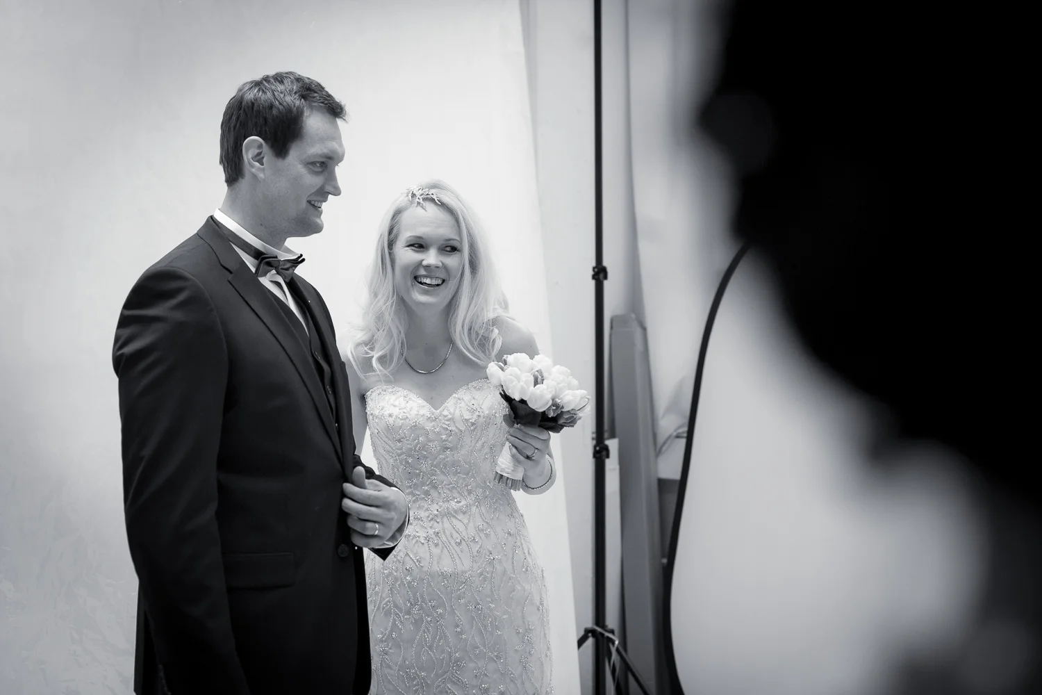 Miika and Terhi got ready together, I did try to keep them apart as I love the emotions I can capture when the groom sees the bride for the first time, but that didn’t happen. Once they were both ready they took me along for a studio photo shoot they had booked to do some formal shots. So now I realized why they didn’t want me to do any formal posed shots, they did them in a studio.